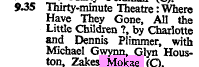 Ancient and Modern broadcast on 29 Dec 1969 with Gerald Flood and William Lucas. "An Orwellian world in which a Socialist Public School is opened,despite the good intentions and efforts from staff to produce a school of equal opportunity and excellence, the school ends up like all the others." Directed by Guy Verney and written by Gu Slater. Mokae plays Gavin Lesotho. (from imdb here). Flood and Mokae also appeared together in Crane.